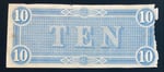 Reverse: The digit 10 in each 4 corners & the text "ten" centered on the note scattered with a royal blue background.