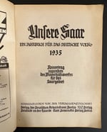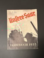 This is an authentic Nazi Germany publication supporting the Saar status referendum of 1935. Titled, "Unsere Saar - Jahrbuch 1935" (A Yearbook for the German People), it's a historical publication that celebrated and supported the 1935 Saar status referendum. In January 1935, over 90% of the Saarland's population voted to return to the German Reich after being administered by the League of Nations following World War I. It contains over 120 pages of illustrations and contemporary advertisements.