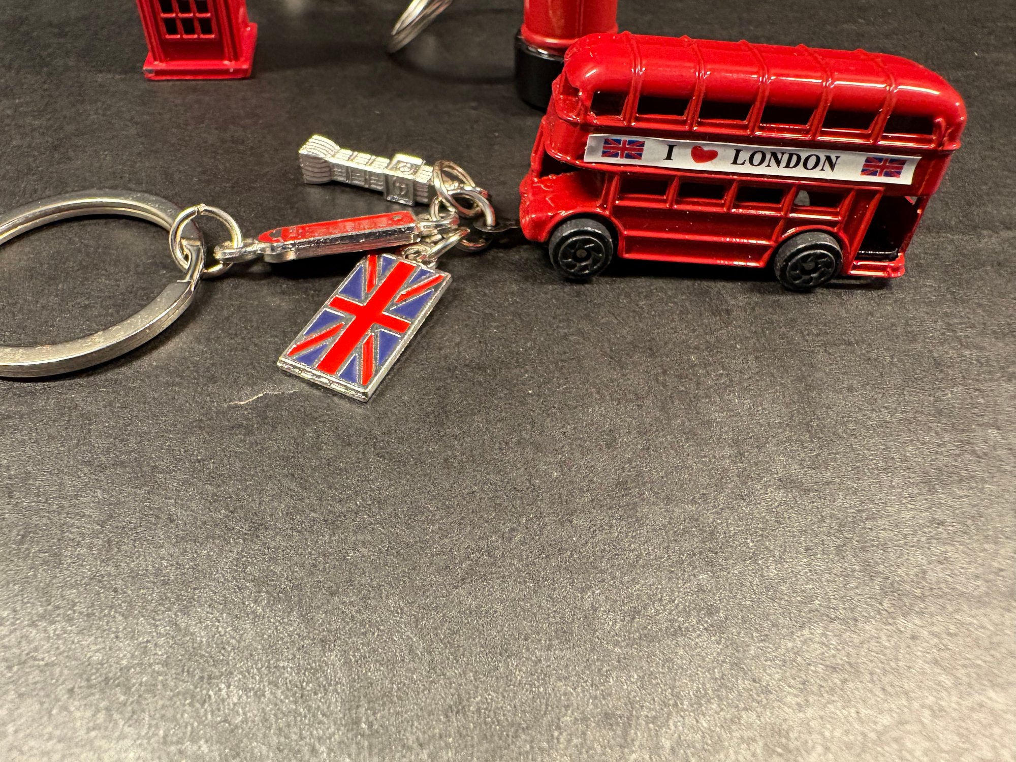 This sale features a trio of London Iconic Landmarks souvenirs - 3x key chains (London Red Bus, letter post pillar, & red phone box).