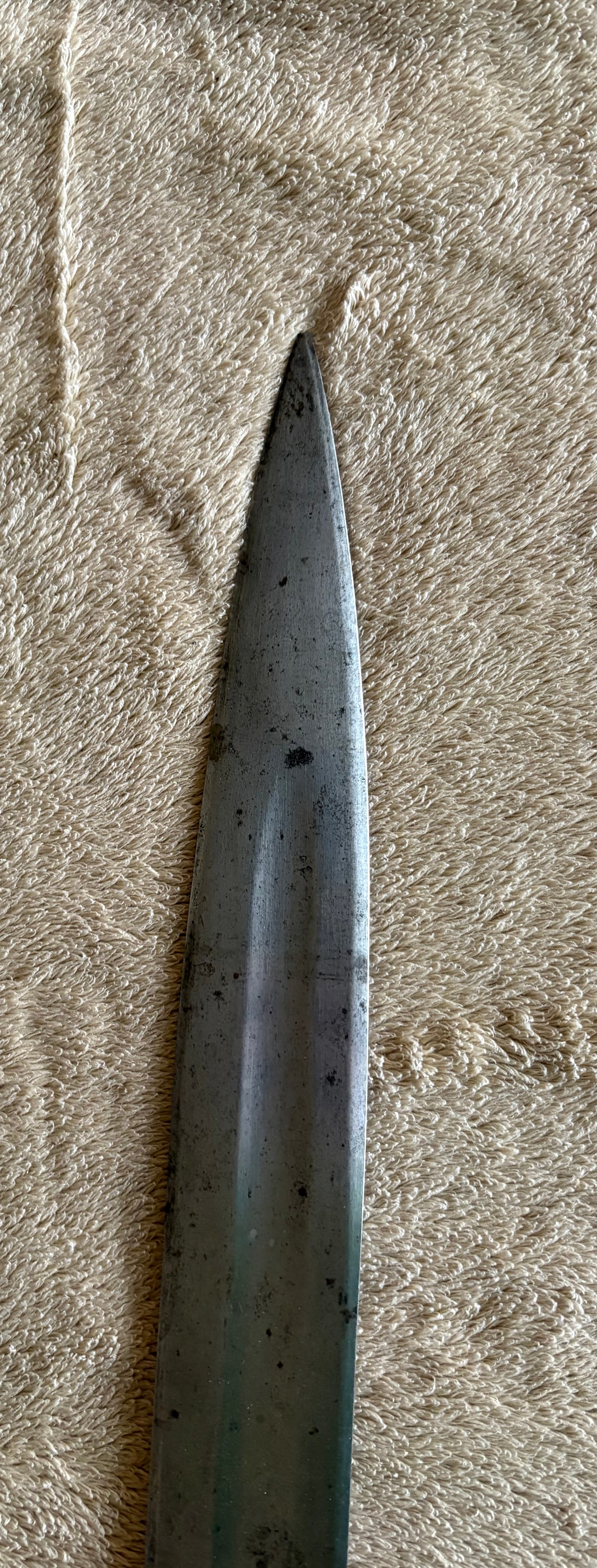 Referred as: M1816 w/flaming bomb on the hilt, unmarked, & rounded pommel., and on authentic French 1816 models, it often features a rooster or an eagle design.