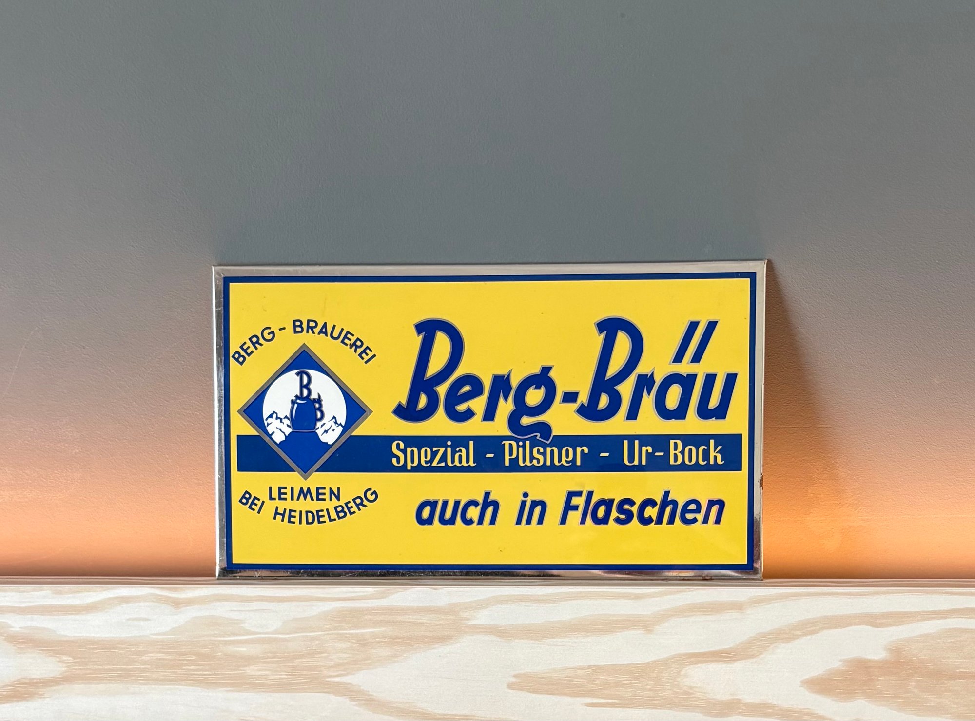 The brewery, Berg-Brauerei Leimen (also known as Bergbrauerei Leimen GmbH & Co KG) was located in Leimen, near Heidelberg, Germany - - but is now considered a defunct brewery thus, this sign has become rare.