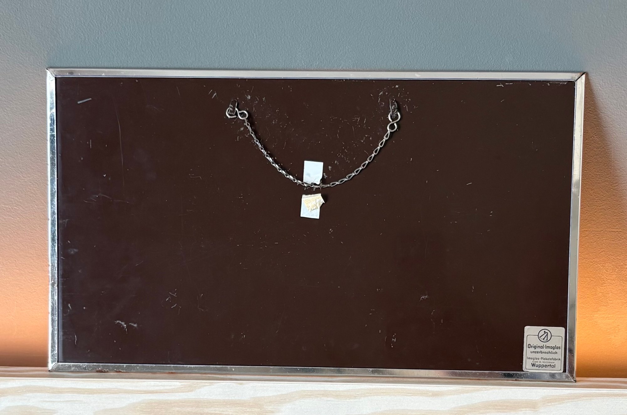 It’s a special glass (Imoglas) light-weight sign in excellent condition w/rounded edge framing creating a smooth finish. The reverse has a chain for hanging & the maker mark sticker. Only a few negligible presentation marks; standard age wear consistent with its age should be expected. Please review photos carefully.