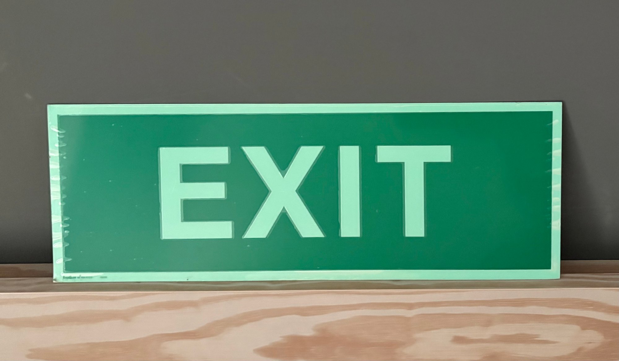 This is an authentic German standard emergency exit sign designed for high visibility allowing quick identification of an exit during an emergency, an important component of the standard-compliant escape route signage in workplaces.