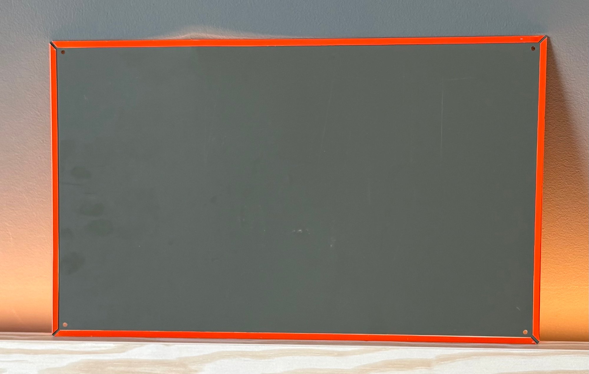 It’s a metal (tin) light-weight sign in excellent condition that is rounded at the edges for a smooth finish. Only a few negligible presentation marks; standard age wear consistent with its age should be expected. Please review photos carefully.