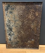 It's a flat sign w/rounded edges and has a nice covering of enamel (save for a few areas of wear). It’s a solid, heavyweight piece with a few enamel vacancies, particularly in 2 of the corners - indicative of standard age wear consistent with age. Please review photos carefully.