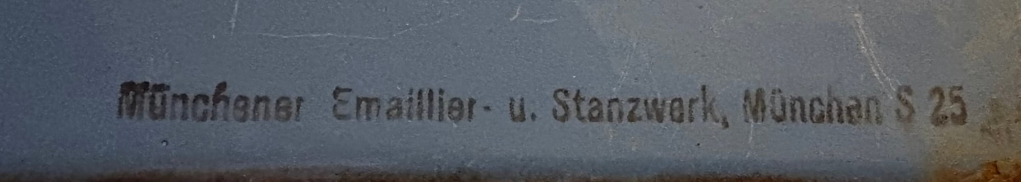 - Lower right contains the maker stamp "Munich Enameling and Stamping Works, Munich S25". The maker stamp is in the post Gothic script era dating this sign to no earlier than 1941.