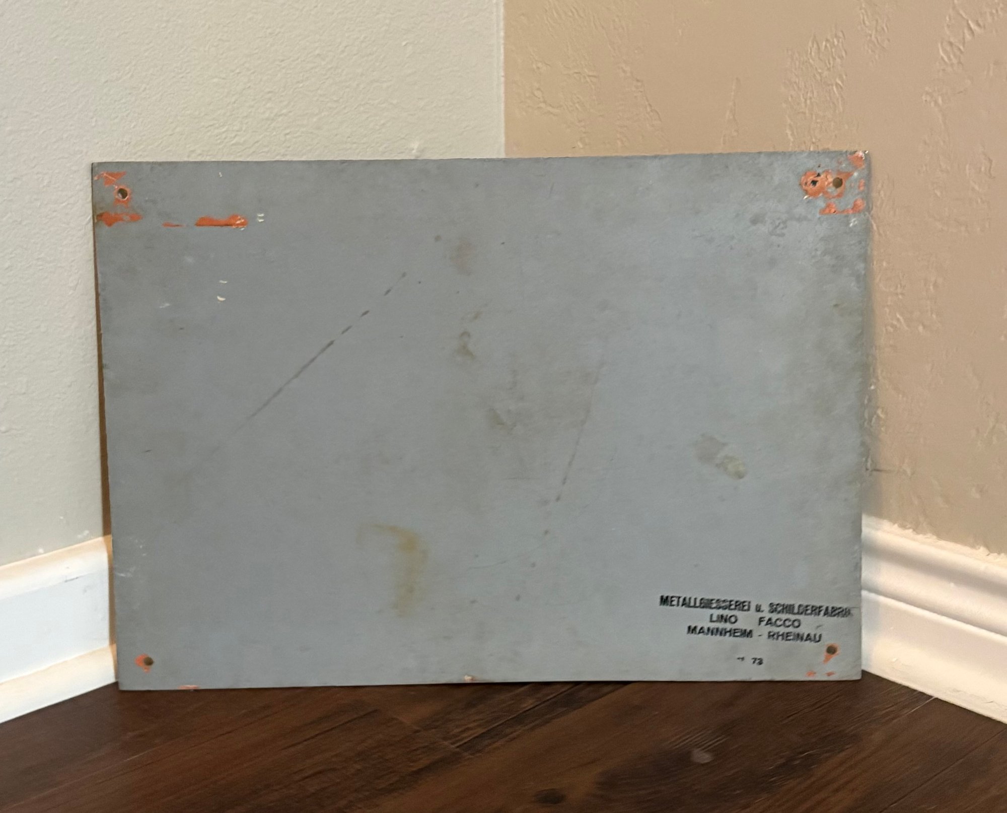 Vintage...manufactured in 1973 as noted at the signs reverse; sourced directly from the region of Rhineland-Palatinate, Germany.