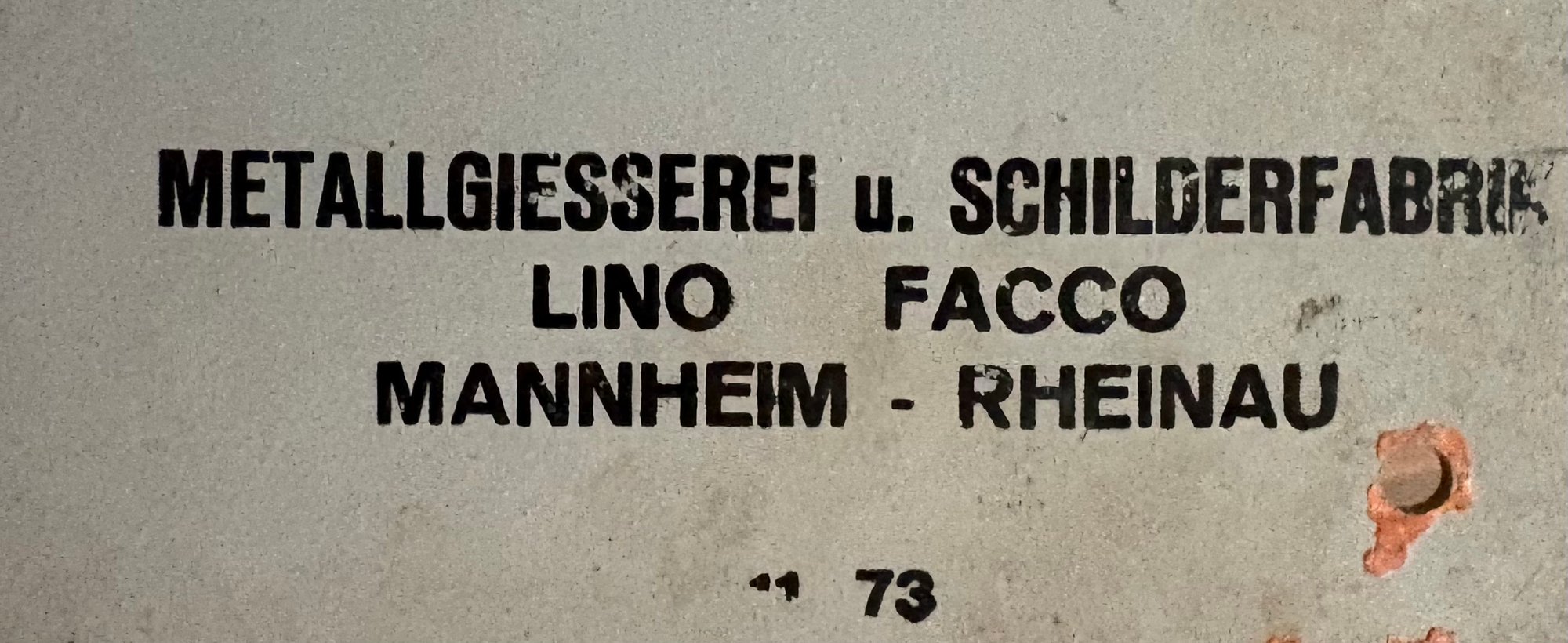 "Mannheim - Rheinau" (city where the sign was manufactured)