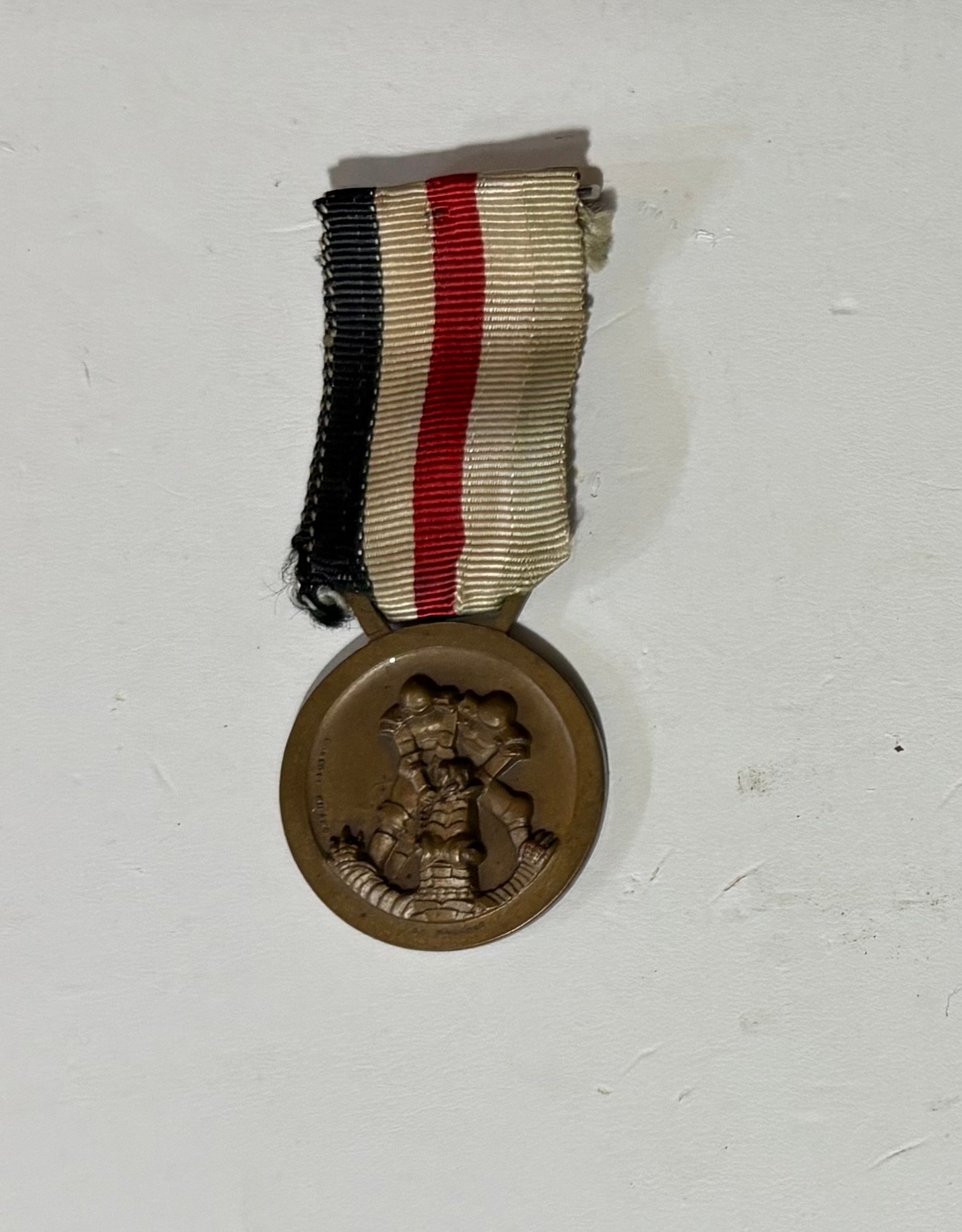 Description: Die struck tombac medal w/an integral ribbon suspension bar & ribbed rayon ribbon in both the German and Italian national colors.
