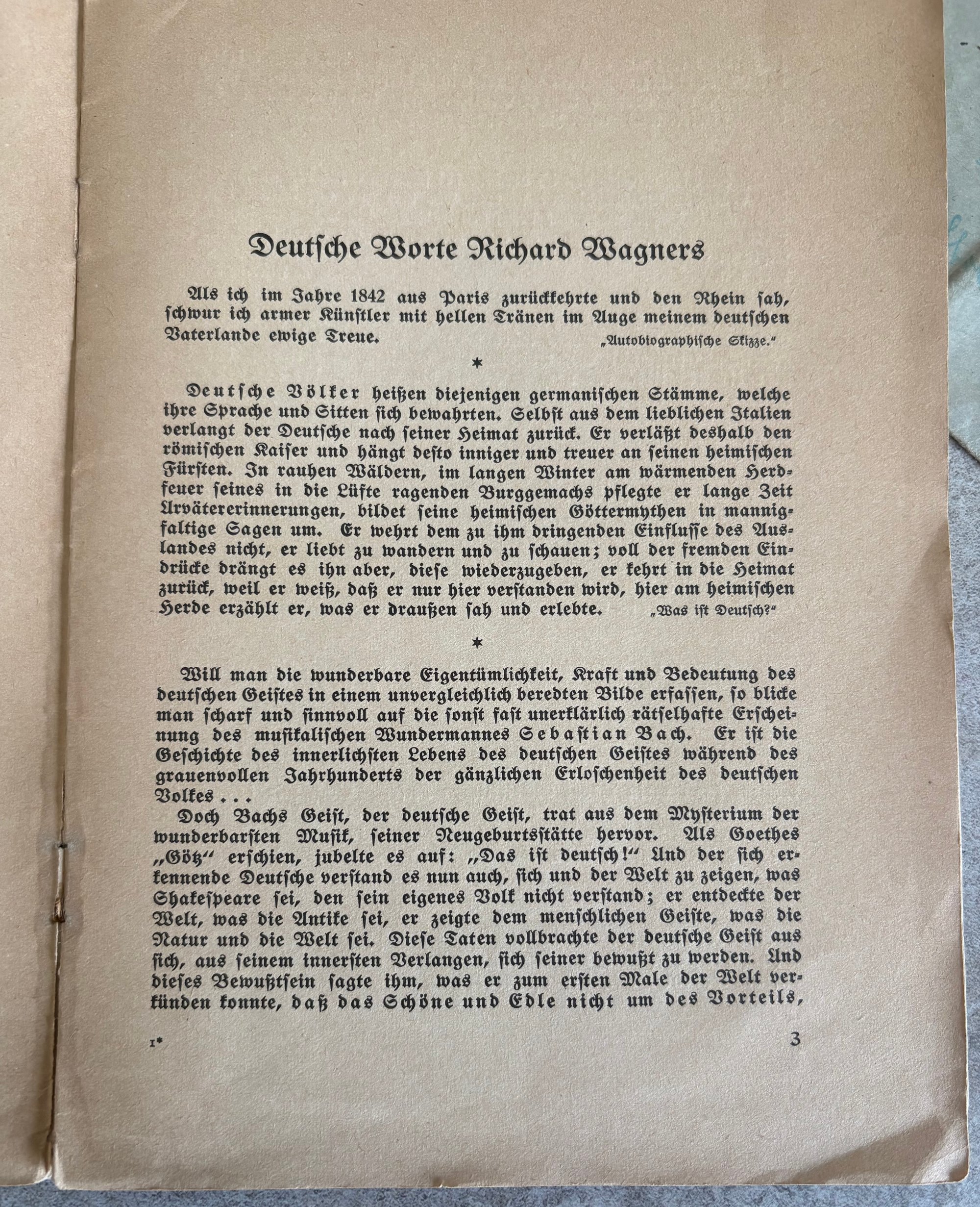 3. Nazi era booklet with 2-page excerpt from German cultural icon, Richard Wagner.