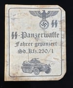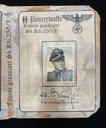 This is an un-authenticated WW2 Nazi Germany Wafffen SS ID document certifying the holder's license to operate the Sd.Kfz. 250/1 half track military vehicle.