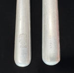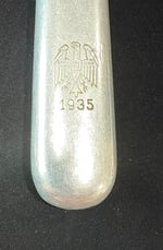 Wehrmacht Canteen Cutlery like these sluminum utensils with eagle engravings and dates were standard for military mess halls. These were common informal service pieces mass-produced of aluminum or nickel-plated steel for daily military use.