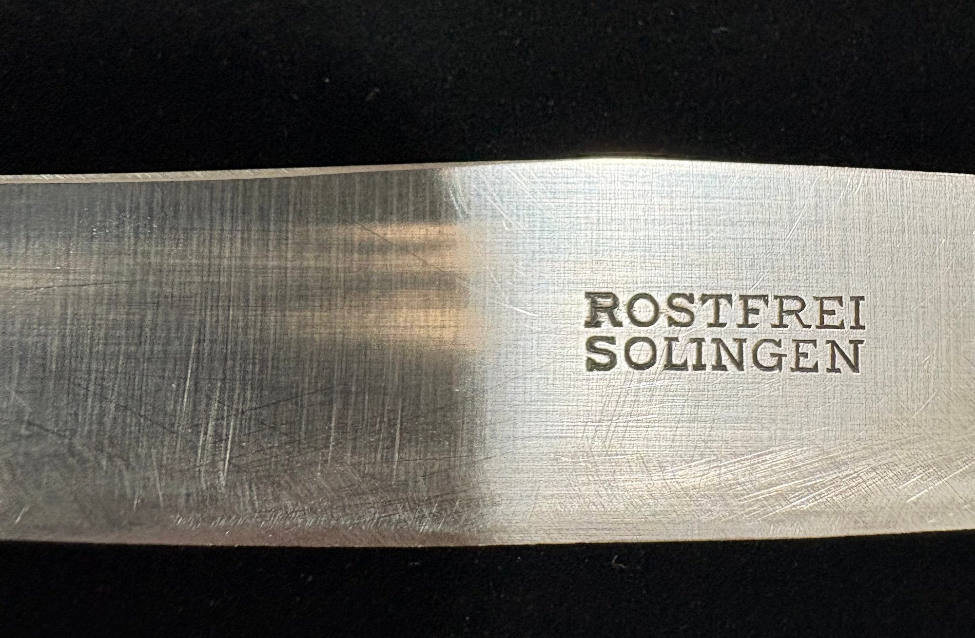 - The hallmark "Rostfrei" designates this type of metal as Rust Free & produced in the city of Solingen.