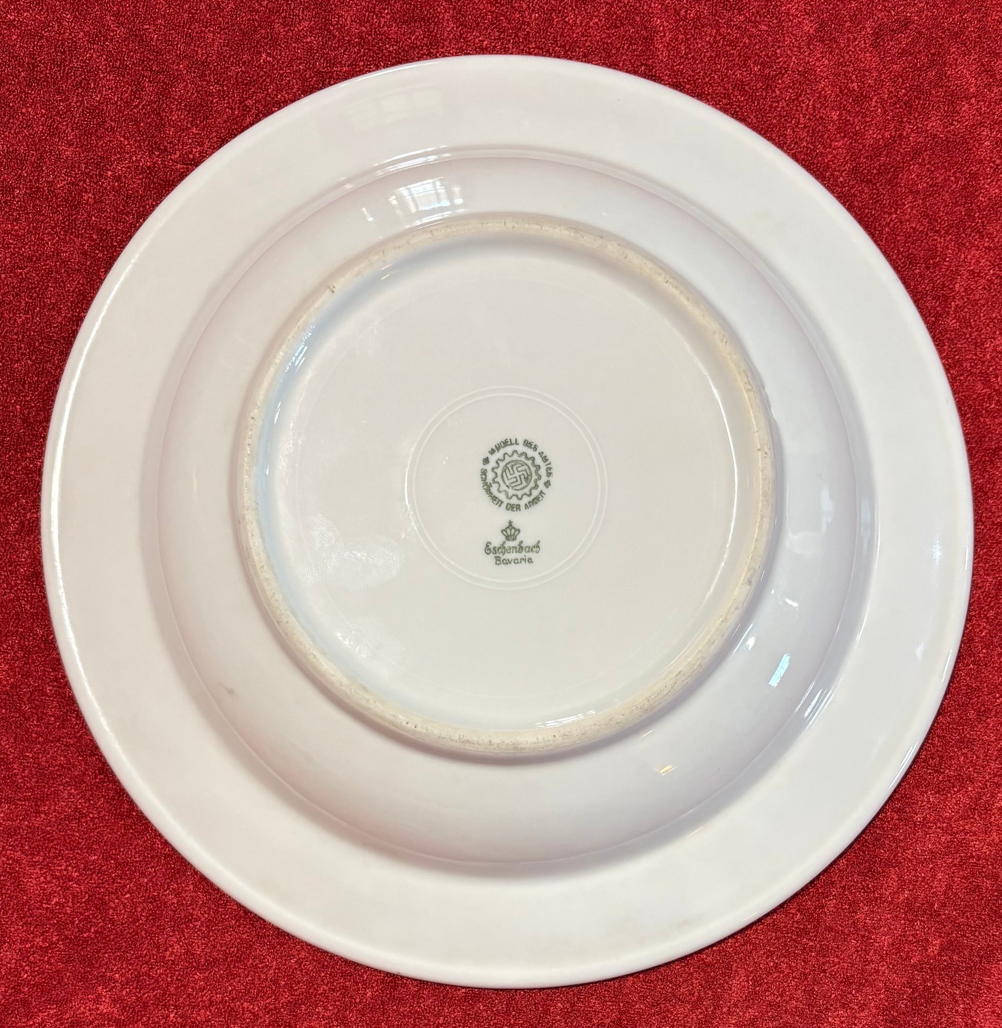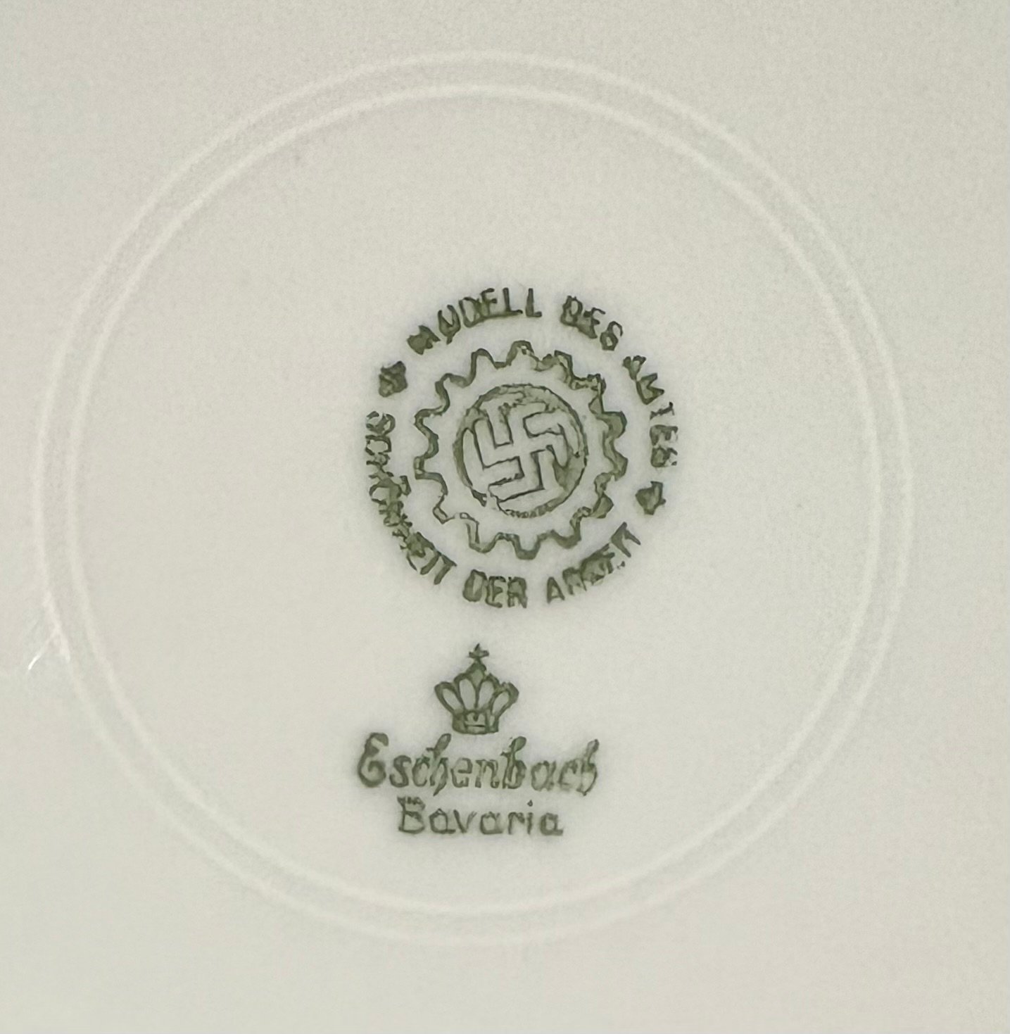 This is an authentic WW2-era porcelain bowl of Nazi Germany used in a Deutsche Arbeitsfront (DAF) - German Labor Front mess hall; it was manufactured by Eschenbach Bavaria, indicated by its back stamp.
