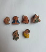 This particular lot is of the WHW Wilhelm Busch series (4) and the Struwwelpeter series (2) & includes Adele, Max, Nolte, Man w/Green Jacket, Thumb Sucker, & Rabbit in the Forest. The Struwwelpeter (Shockheaded Peter) is a 1845 cautionary tale German children's book providing moral lessons that demonstrates the disastrous consequences of misbehavior in an exaggerated way. All pins (save for the rabbit) contain their original pin back attachment.
