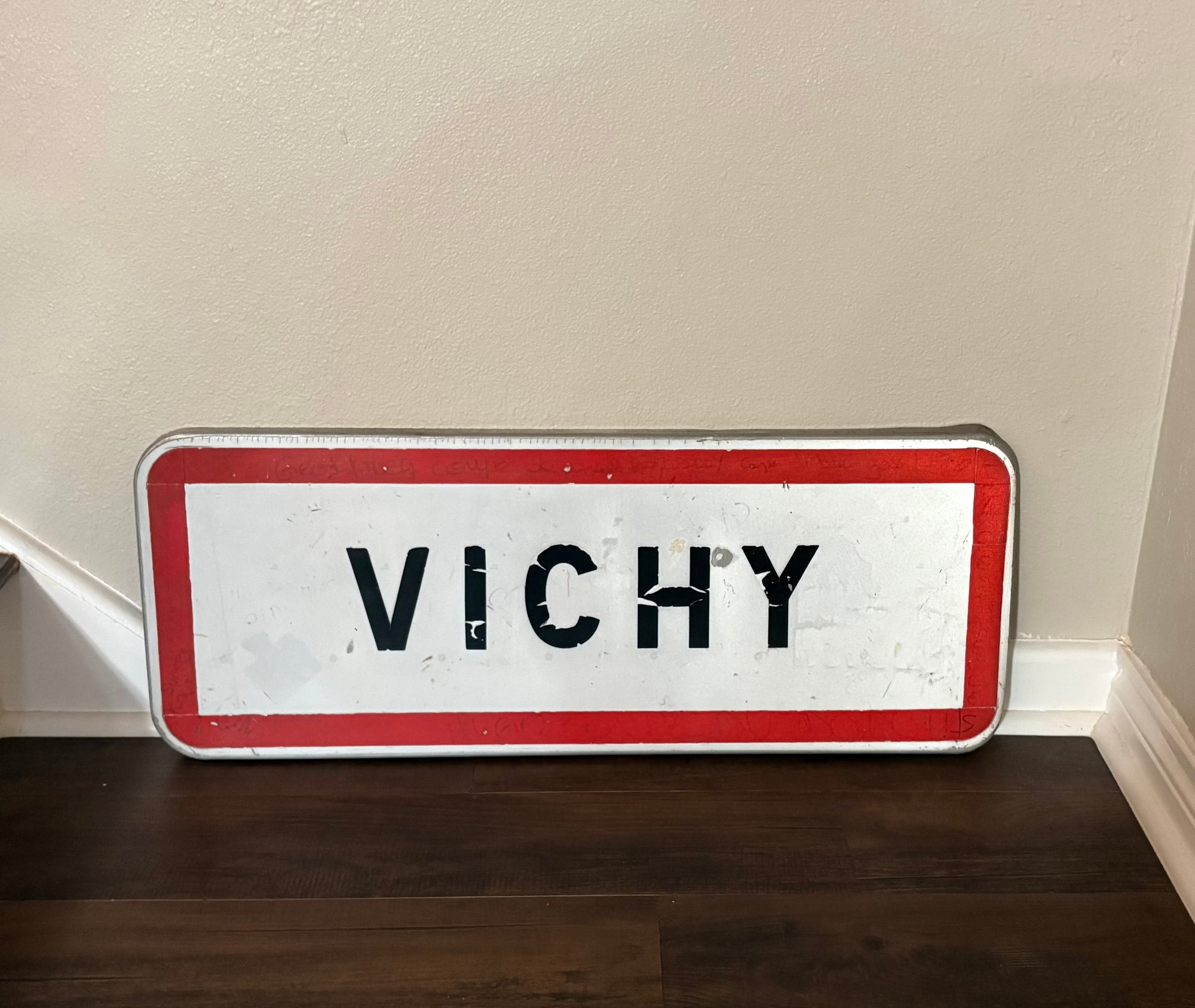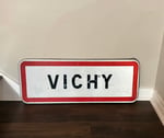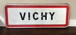 This is an authentic French aluminum city road sign - Vichy. The sign carries the name Vichy, indicating entrance to the city of Vichy, France.