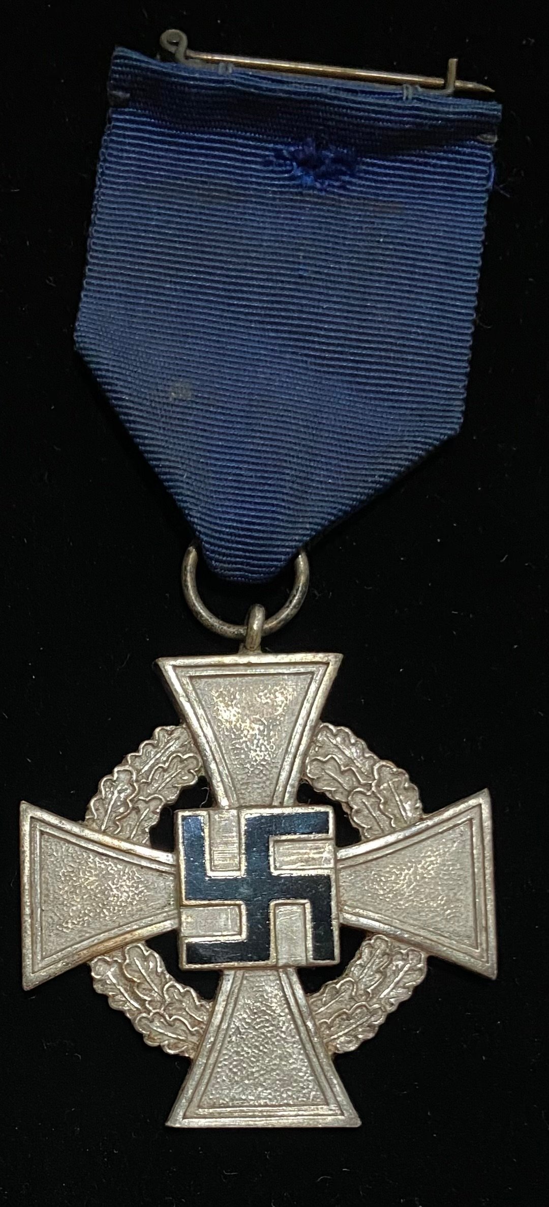 This is an authentic WW2 Nazi Germany Faithful Service Medal awarded in recognition for long serving civil servants & public works personnel. Its intent was to incentivize the civilian population to foster workplace loyalty and also, to create a stable civil service. This medal, the 2nd class, was for 25 years of faithful service.