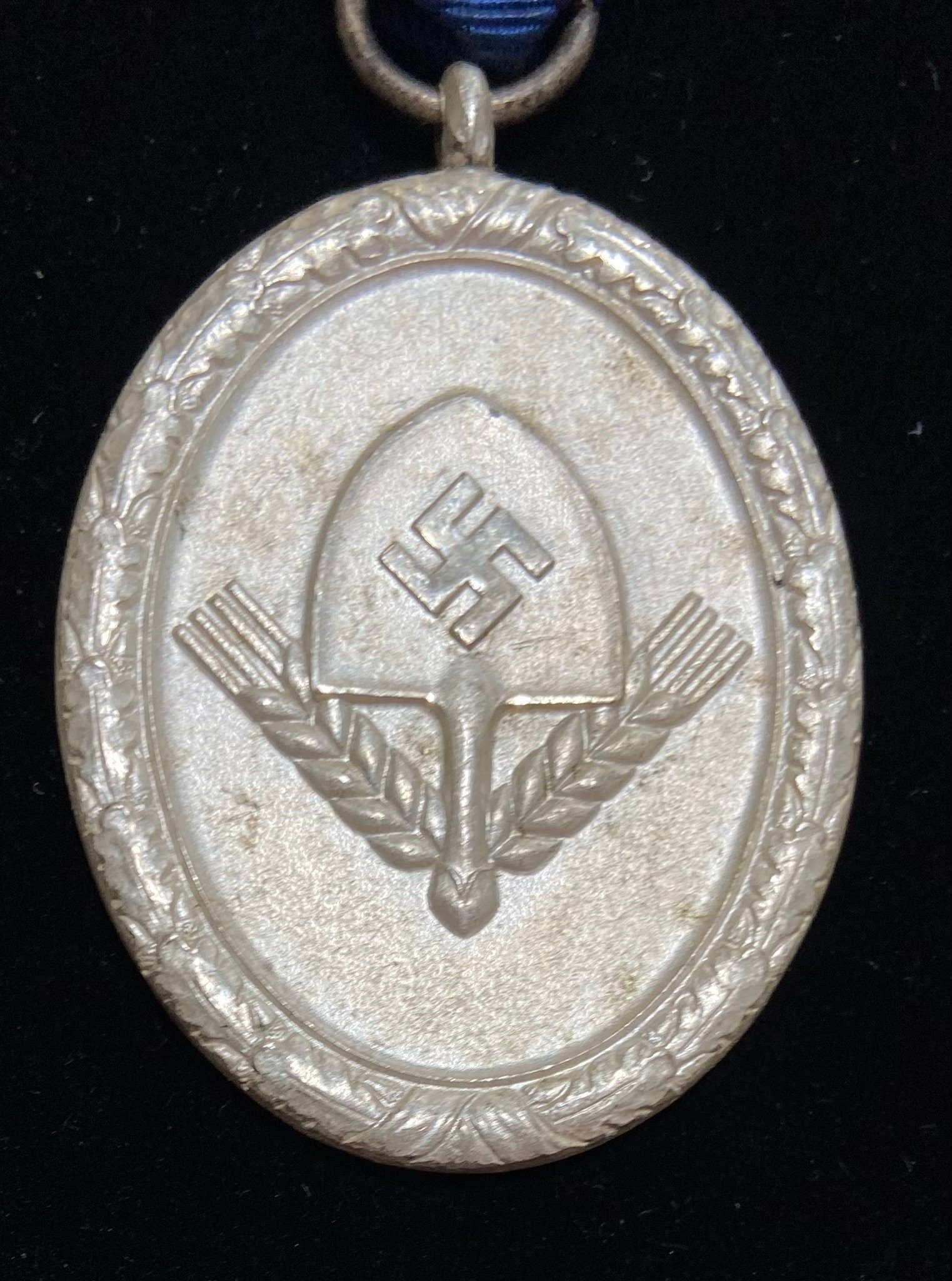This is an authentic WW2 Nazi Germany RAD Long Service Medal awarded to male and female volunteers of the National Labour Service for long and meritorious service. This medal, the 3rd class was for 12 years of meritorious service.