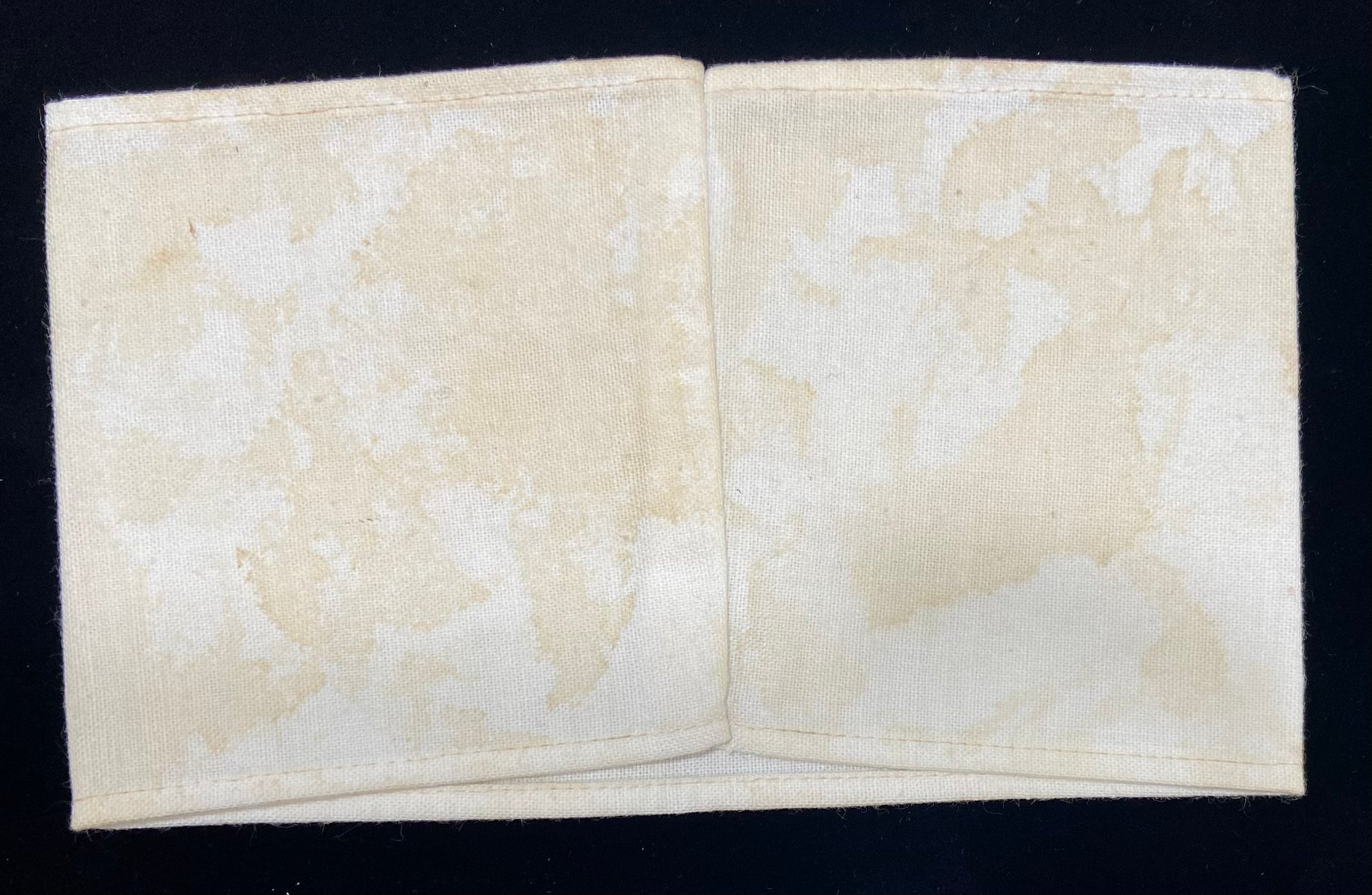 Made usually of white cotton or rayon w/black printed text. Does contains some light staining but overall good condition consistent w/its age.