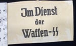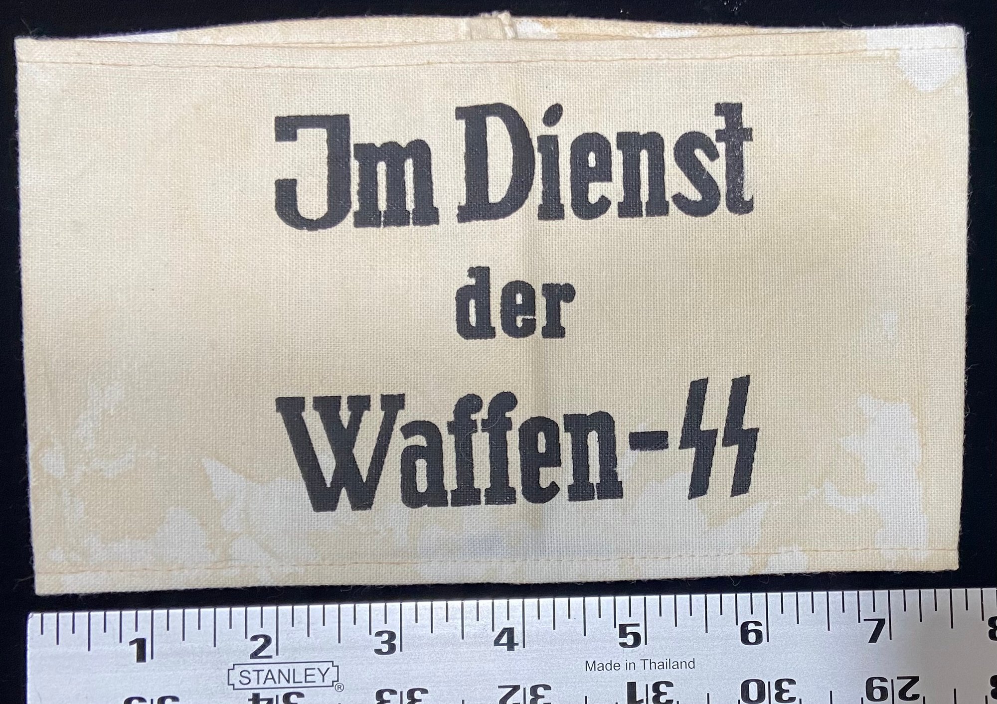 This is an authentic Waffen-SS cotton armband, introduced in 1941, & worn by civilian & auxiliary personnel serving the Waffen-SS during WW2. The Armband would distinguish them from military personnel & worn on the upper left sleeve.